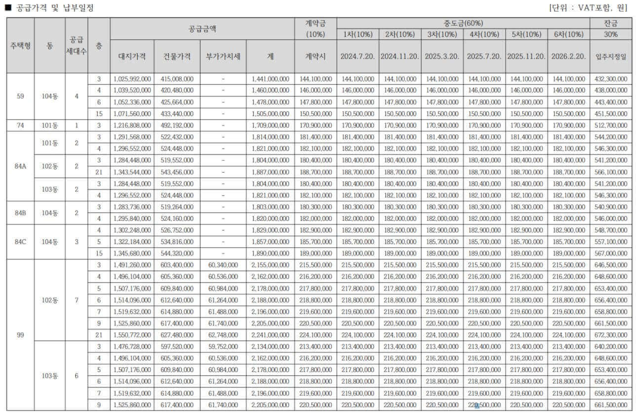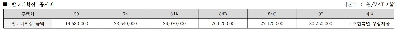 분양가는 평형과 타입, 층수 등에 따라 달라지며 발코니 확장 및 추가 선택품목 비용은 포함되어 있지 않습니다.