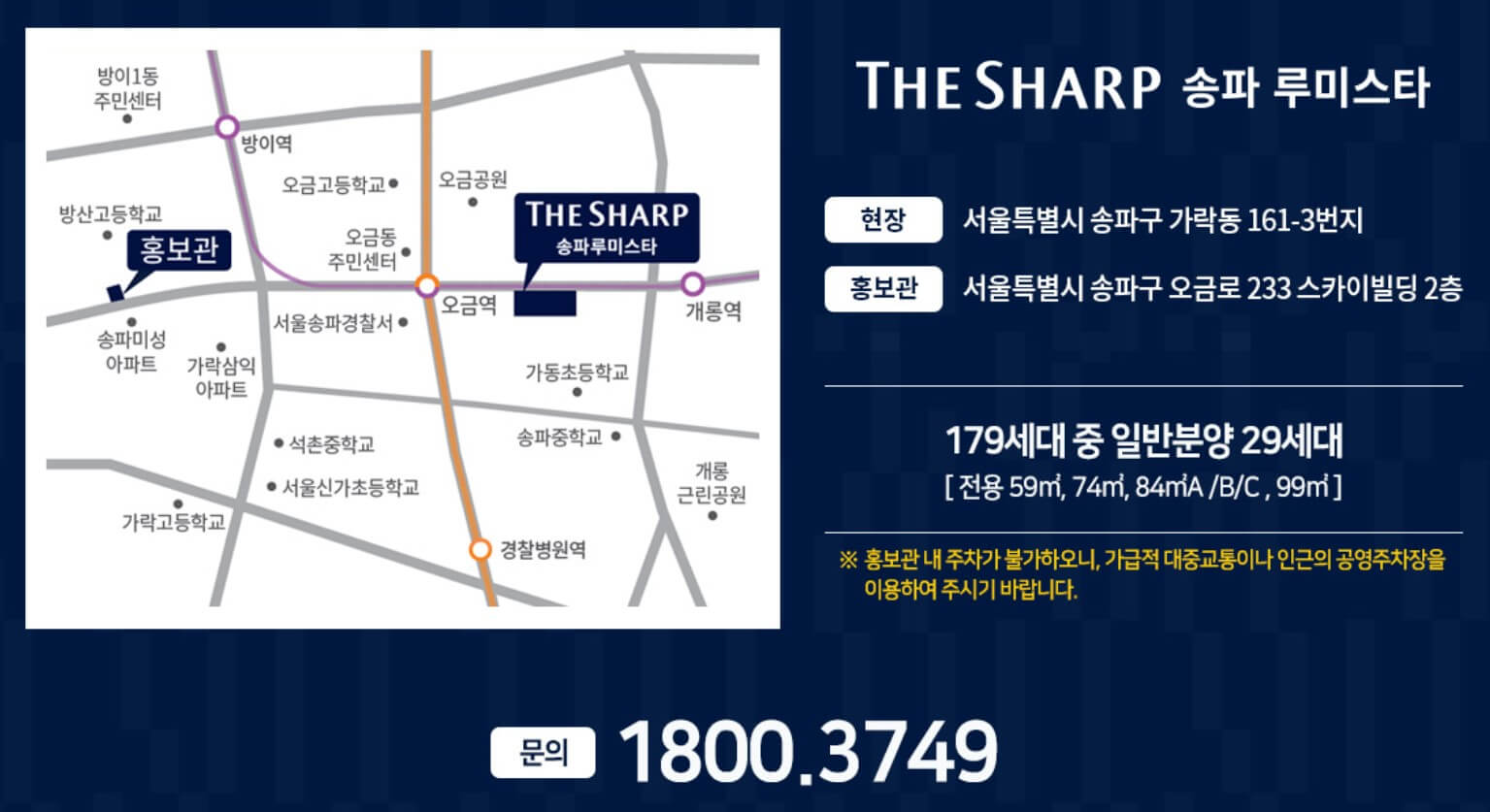 견본주택은 현장과 조금 떨어진 현재 송파구 오금로 위치합니다. 견본주택 방문이 어려우신 분은 사이버 견본주택을 이용하세요.