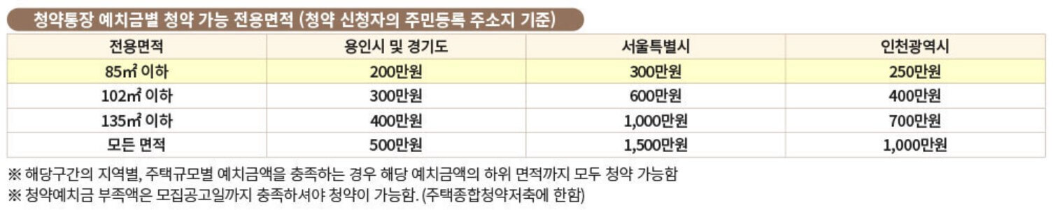 ● 청약통장 가입기간 12개월 이상으로 지역별, 면적별 예치금 충족시