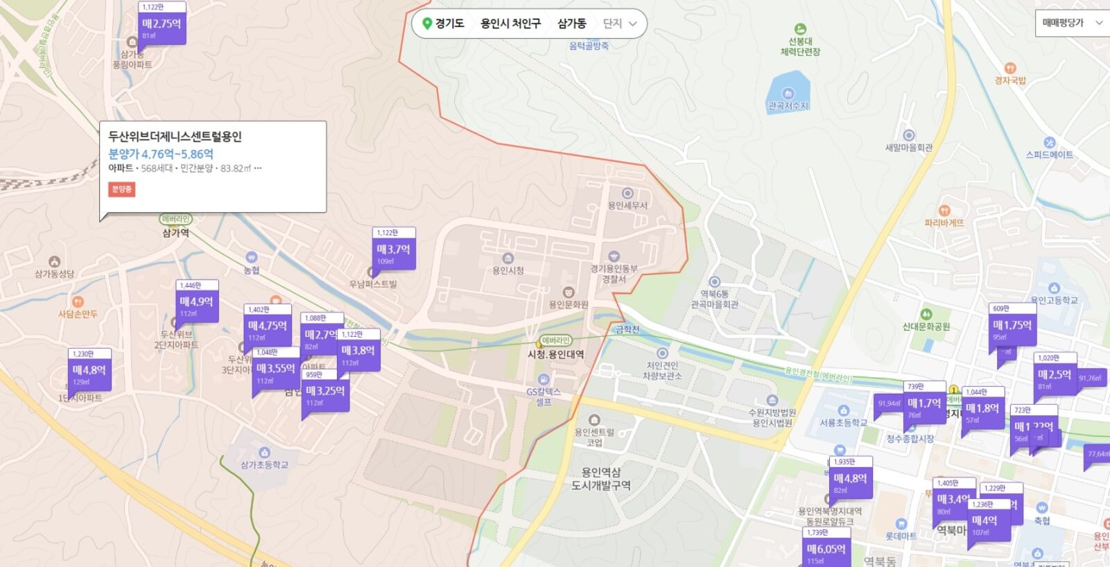 두산 위브더제니스 센트럴용인은 초역세권의 프리미엄과 1km 이내에 용인 시청, 용인 동부 경찰서, 세무서 등의 용인 행정의 중심지가 자리합니다. 경부, 영동 고속도로와 접근이 용이하며, 용인 반도체 클러스터 조성 계획, 삼가-역삼-역북을 잇는 미니 신도시급의 도시를 조성할 계획을 갖춰 미래가치가 높다고 자부하고 있습니다.