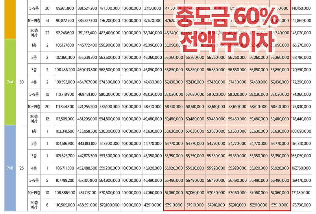 ● 74A 타입 : 5억 5090만원 ~ 5억 9480만원