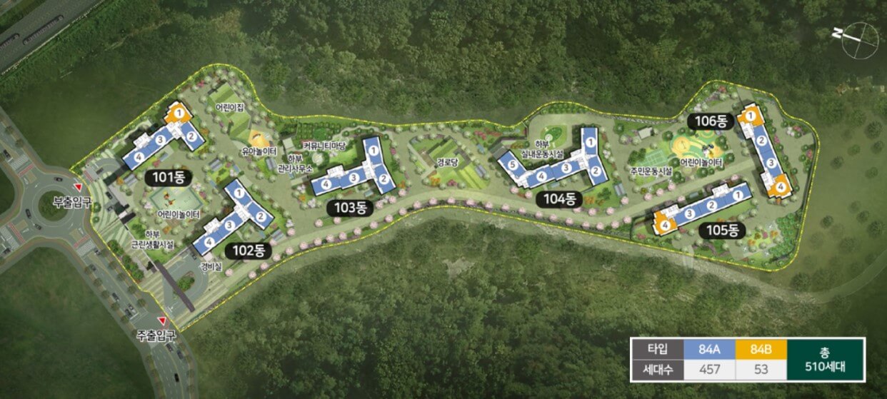 - 사전공급 143세대, 이번 공급 367세대(특별공급 224세대, 일반공급 143세대)