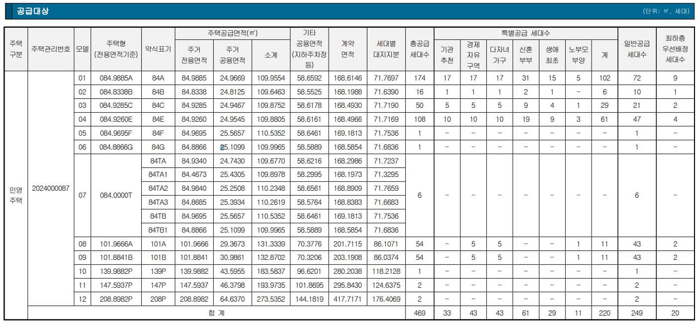 규모 : 지하 1층 지상 29층, 6개동 / 469세대(일반공급 249세대)