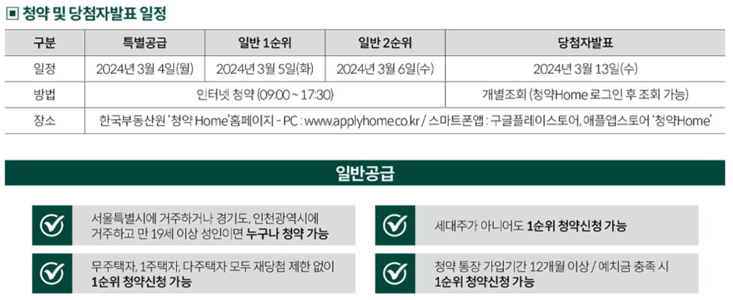 ● 특별공급 : 2024년 3월 4일(월) 09:00 ~ 17:30