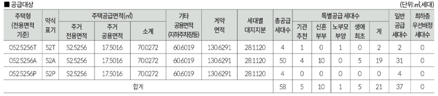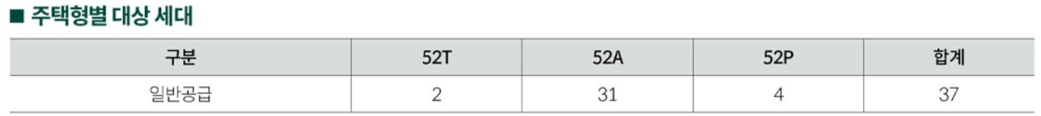 - 52A : 50세대(일반분양 31세대) 3-15층까지 판상형 구조
