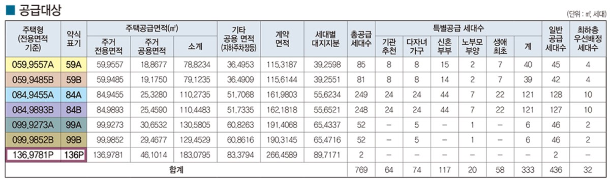 ● 공급타입 : 전용 59, 84, 99, 136