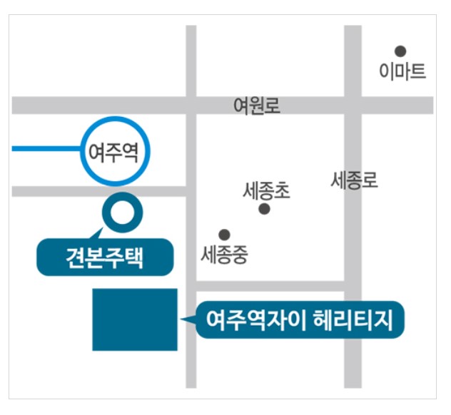 여주역자이 헤리티지는 경강선 여주역에서 차로 2분, 도보 9분 거리에 위치합니다.