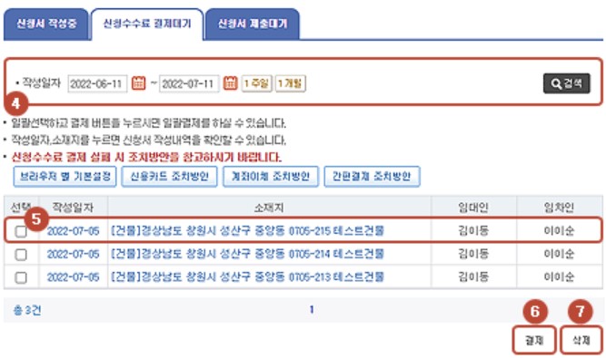 4. 신청서 제출 및 수수료 결제