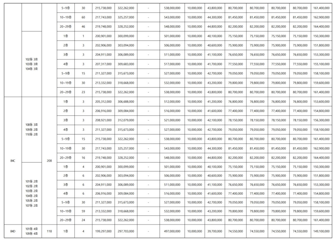 ● 84타입 : 4억 9300만 원 ~ 5억 4800만 원